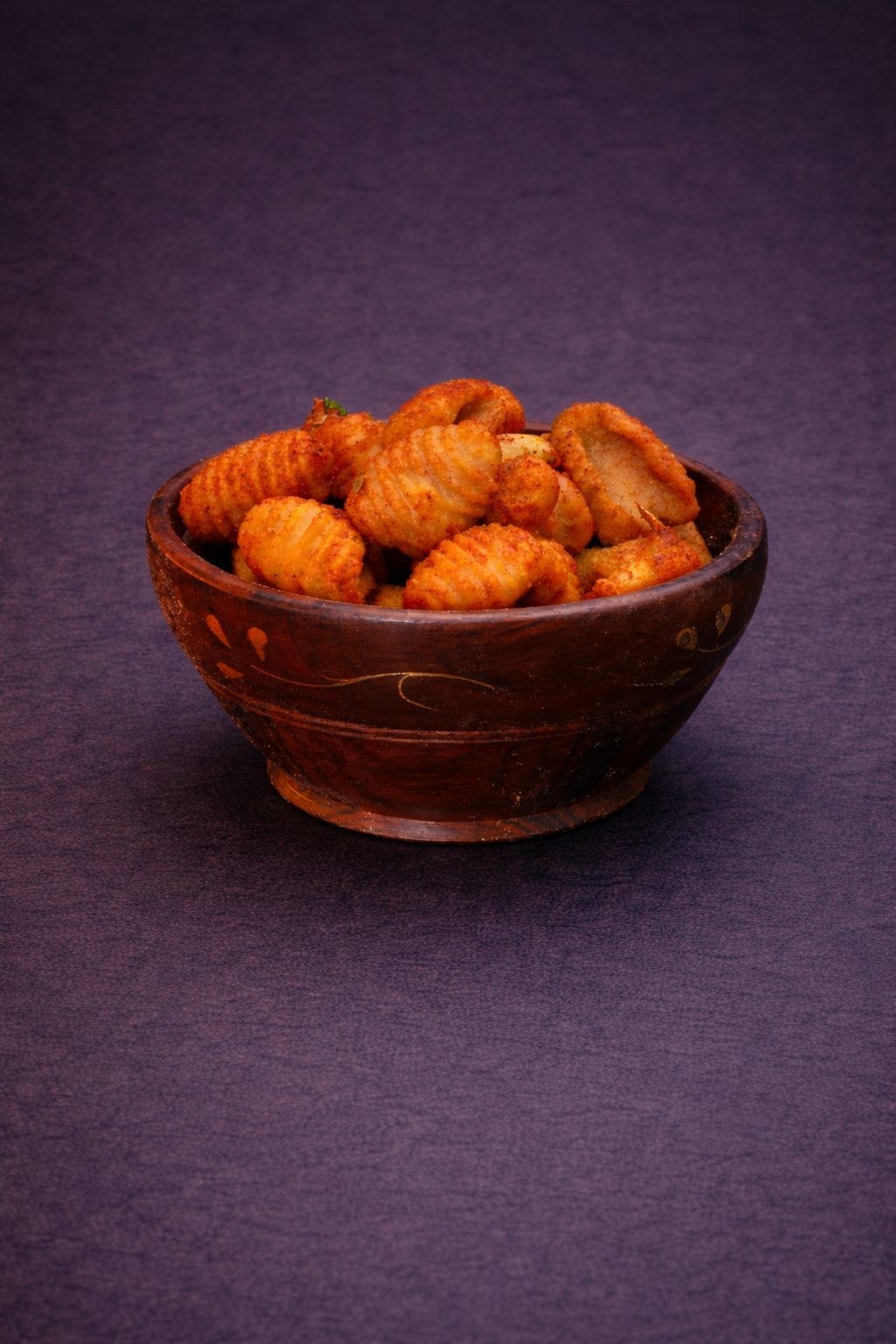 Gummadi Vadiyalu is a traditional Andhra savory delicacy made from fresh pumpkin (gummadi), carefully blended with rice flour, spices, and sun-dried to perfection. These vadiyalu are known for their light, airy texture and irresistible crunch when deep-fried, offering a delightful burst of authentic homemade flavors in every bite.